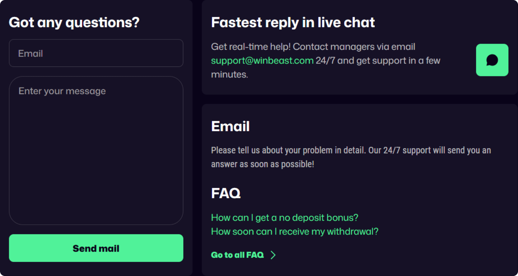 In many WinBeast reviews, users say that help is quick to respond, especially when it comes to bonus or account issues.